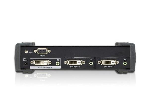 Displays DVI audio/video to multiple DVI-compatible monitors or projectors