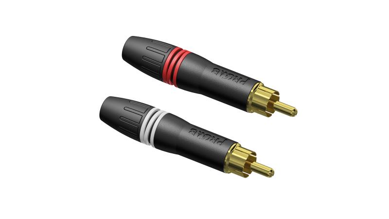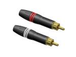 Ovi profesionalni RCA konektori sastoje se od kučišta otpornog na ogrebotine koje je izrađeno od lijevanog cinka s crnim kromiranim slojem. Fleksibilni kabelski umetak na stražnjoj strani konektora izrađen je od poliacetalne čahure s EPDM brtvenom oblogom i može stati u velike promjere kabela. GPozlaćenje je osigurano na kontaktima kako bi se osigurala najpouzdanija komunikacija.