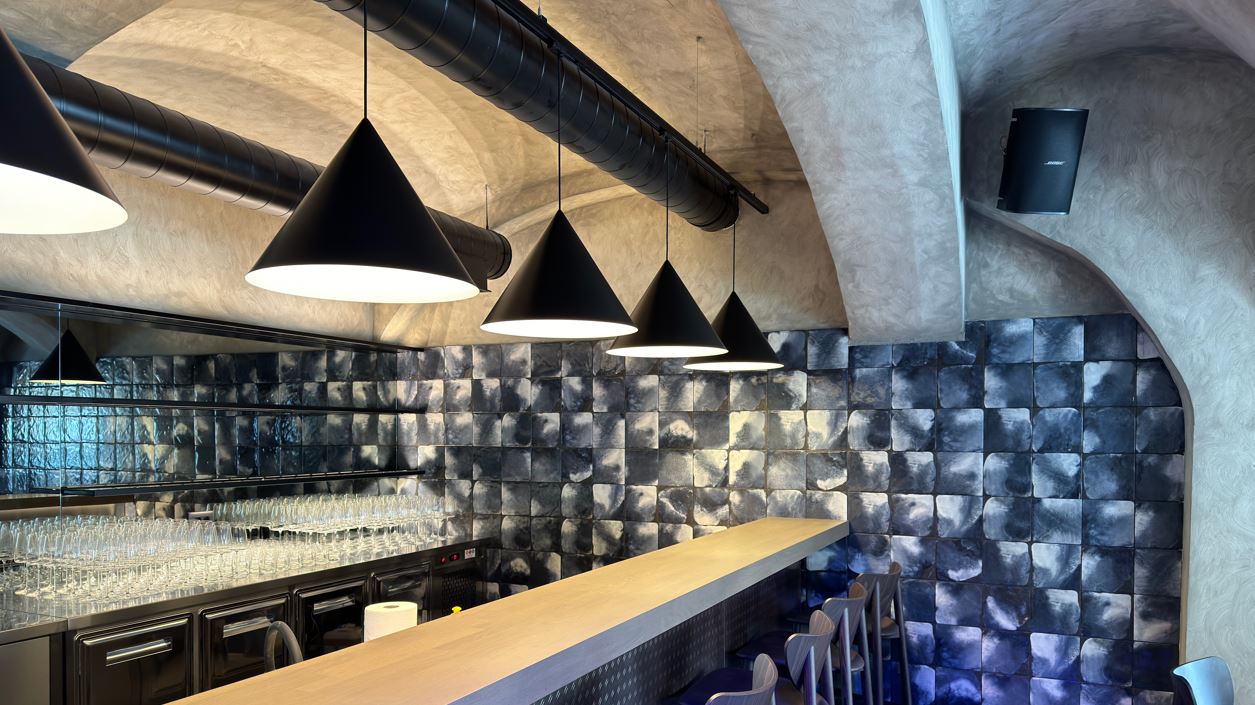 projektni zadatak osmisliti sustav višezonskog ozvučenja restorana i video reprodukcije, u svrhu reprodukcije pozadinske glazbe, glazbe u živo, video prezentacije, TV sadržaja i dr. s diskretnom izvedbom, strogim arhitektonskim uklapanjem u prostor, zonskim upravljanjem i visokokvalitetnom reprodukcijom zvuka i slike. Restoran je podijeljen na 8 nezavisnih zona ozvučenja, gdje je za svaku zonu omogućena zasebna regulacija glasnoće i odabir izvora zvuka. Kompletno upravljanje sustavom omogućeno je preko