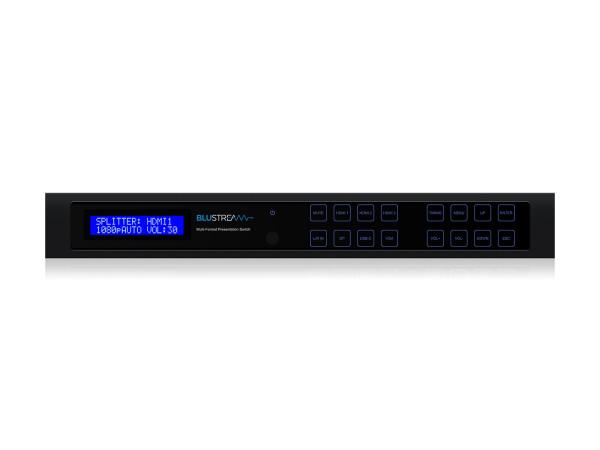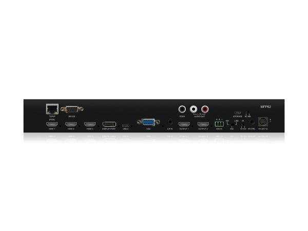 Blustream MFP62 je multi-format 4K prezentacijski preklopnik s ugrađenim video skaliranjem i naprednim EDID upravljanjem. S panelom na prednjoj ploči, IR daljinskog upravljača ili sučelja RS-232 uređaj predstavlja idealno rješenje za komercijalne i HC instalacije