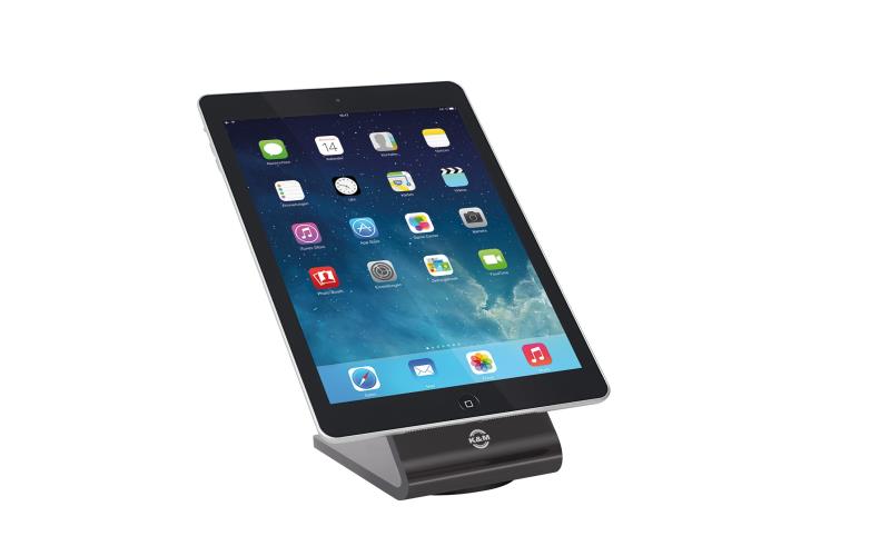 S ovim elegantnim univerzalnim stalkom za tablet računala izrađenim od dubokog crnog akrilnog stakla visokog sjaja, vaš tablet ima istaknuto mjesto na vašem stolu. Dva podloga drže tablet na mjestu (bez ljepila i magneta), možete birati između vertikalnog i horizontalnog postavljanja. Tablet se lako postavlja i uklanja s postolja. Za ponovno postavljanje jastučića jednostavno ih očistite vodom. Kut od 45° omogućuje gledanje videa i fotografija te surfanje i tipkanje. Stalak je opremljen s dva protuklizna jastučića na dnu postolja.