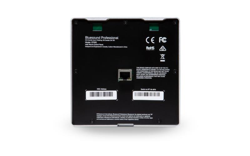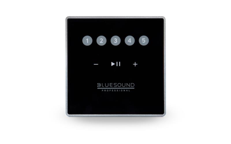 low profile wall-mount control panel for all Bluesound Professional players. It features sleek design with a glass control panel with illuminated touch sensitive controls. It is possible to recall presets, pause music/mute and adjust volume in the zone that the panel is controlling. The CP100 is designed to fit flush to the wall or mounted in a large variety of international back-boxes for ease of installation. The control panel controls illuminate as needed, and the control can be locked to protect against unintended or unauthorized use.
