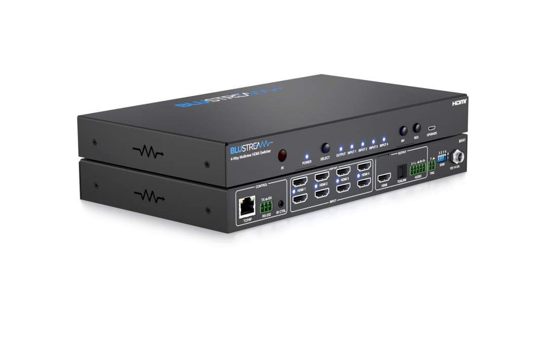 Naš MV41 je napredni 4x1 HDMI preklopnik s više prikaza. MV41 omogućuje izlaz do 4x HDMI2.0 izvora na jedan zaslon u isto vrijeme, s unaprijed definiranim i prilagodljivim video izgledima i besprijekornim prebacivanjem. MV41 također podržava HDMI loop-through za sve HDMI ulaze omogućujući kaskadno spajanje izvornih signala izvora za daljnju distribuciju.