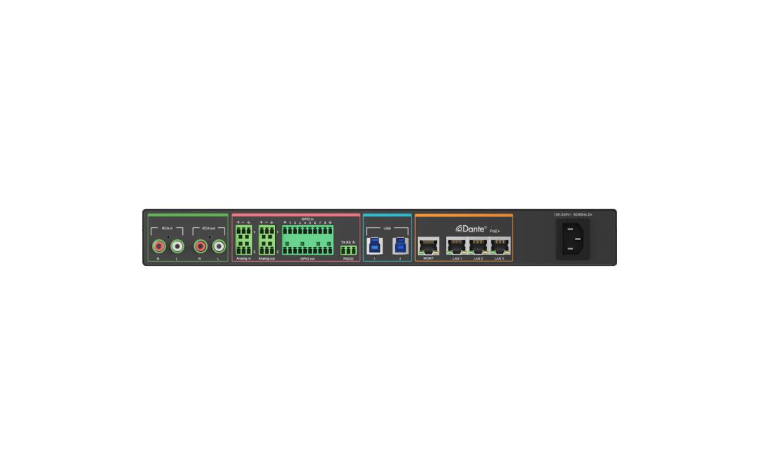 Ulazi 2 * RCA input - 2 * 3-pin Analog input; Input Channels: 2 * USB input; LAN 1-3: Dante network port