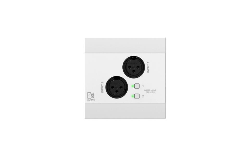 The audio inputs can be switched between line-level and microphone-level audio signals and phantom power (+48 V DC) can be applied to the XLR input connectors for powering condenser microphones. Various further integrated DSP functions such as EQ, automatic gain control, and other device settings can be configured through the AUDAC Touch™.