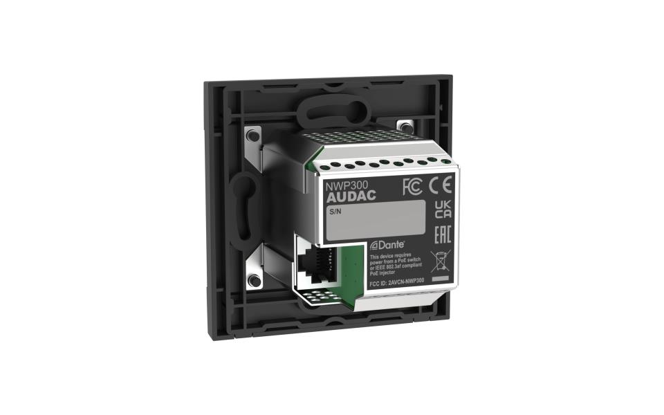 The NWP300 is a Dante™/AES67 network input panel, featuring a single 3.5 mm stereo jack stereo input connection and an integrated Bluetooth receiver, which can be used to transmit audio signals in a Dante™ audio network.
