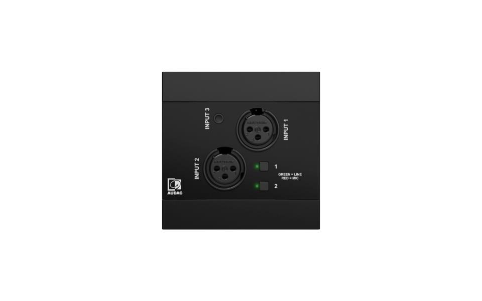 NWP320 is a Dante™/AES67 network input panel, featuring two XLR input connectors, a single 3.5 mm stereo jack stereo input connection, and an integrated Bluetooth receiver, which can be used to transmit audio signals in a Dante™ audio network.