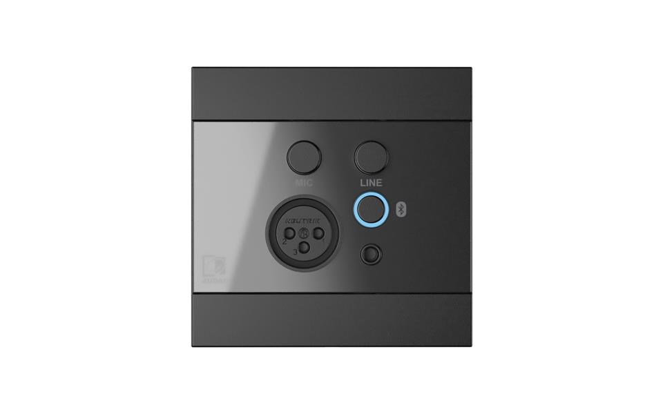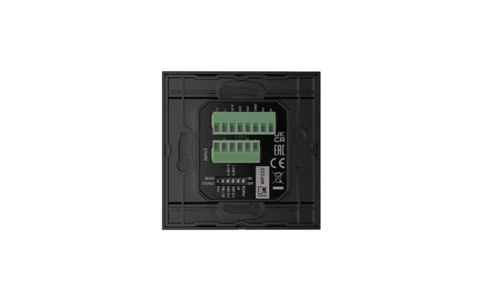 remote wall mixer that can be used in combination with various AUDAC hardware (ARES5A, MTX series, AMP523 and more). It converts the signal coming from a stereo line-level audio source (such as a tuner, mobile devices, ... ) or balanced microphone to the level corresponding to the differential signal input making it possible to transfer high-quality audio over long distances between the wall panel and the loudspeaker, by just using inexpensive twisted-pair CAT5e or better cabling. On the front side of the wall panel, there is a 3.5 mm jack stereo line input connection available together with a balanced XLR microphone input, both provided with their own knob which allows the signals to be mixed together.