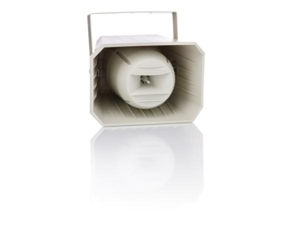 vodootporan IP55 2-sistemski horn ABS zvučnik snage 50W 8Ω sa ugrađenim 100V transformatorom i stupnjevanjem snage. Pouzdan zvučnik iznimno kvalitetne reprodukcije zvuka za sve vrste komercijalnih objekata i otvorenih prostora.