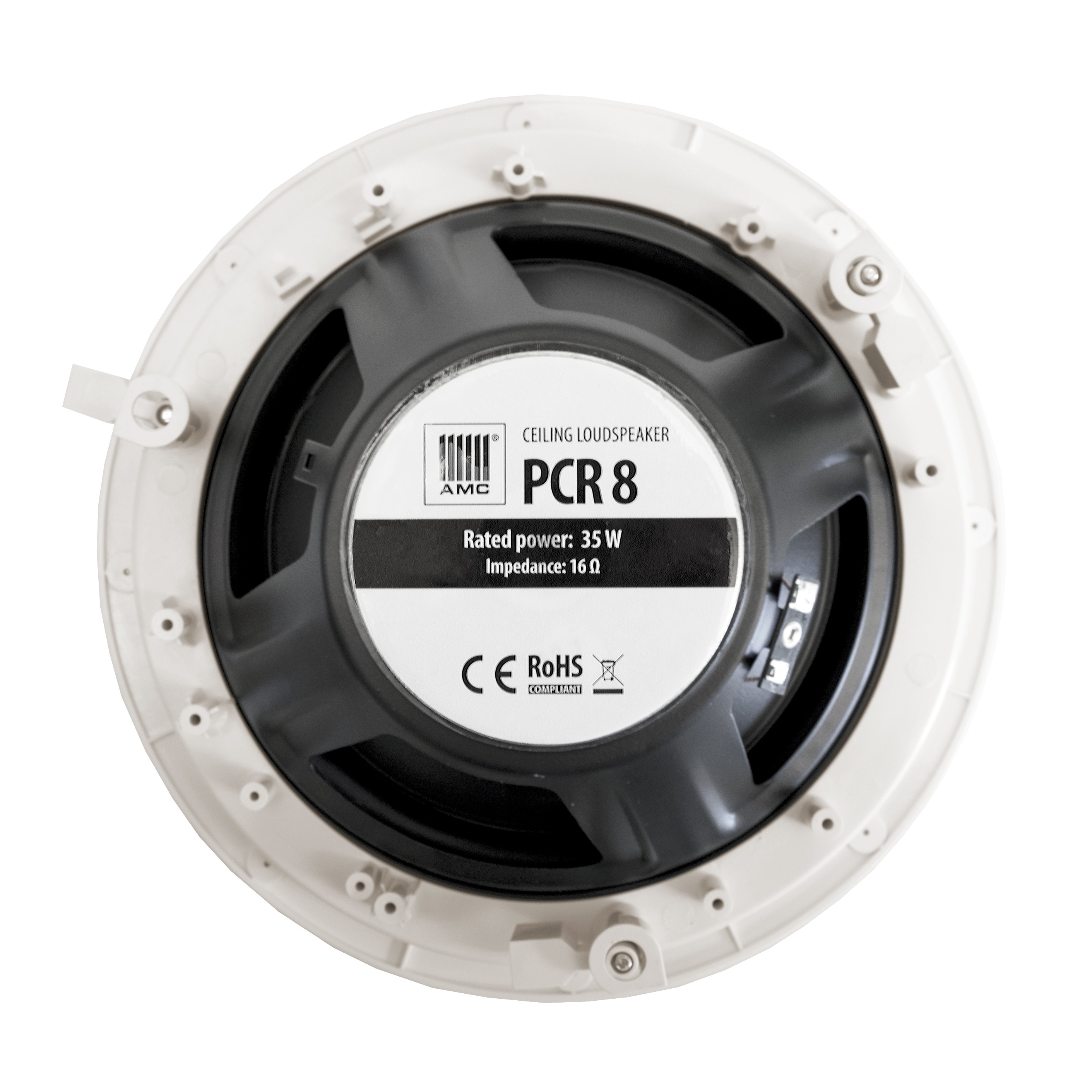 Zvučnik AMC PCR 8, ugradbeni stropni niskotomski zvučnik koji koristi 8" bas jedinicu, te 0.5 " visokotonac.
