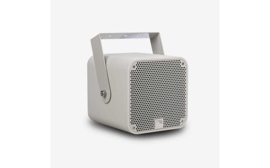 samostojeći zvučnik nazivne snage 100W za unutarnju i vanjsku uporabu (IP55), moguć odabir 8Ω ili 100V, nosač u kompletu, bijela boja, transformator sa odabirom snage, 5-inch woofer i 1-inch visokotonac, boja RAL 7038