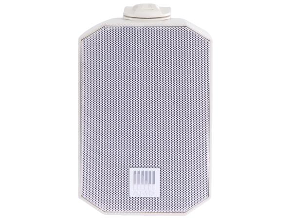 Nadgradni zvučnik, nazivne snage 20W, moguć odabir 8Ω ili 100V. Namijenjen za unutarnju i vanjsku uporabu, sa IP 55 zaštitom. Nosač u kompletu, bijela boja, transformator sa odabirom snage, 4" woofer i 1" visokotonac.