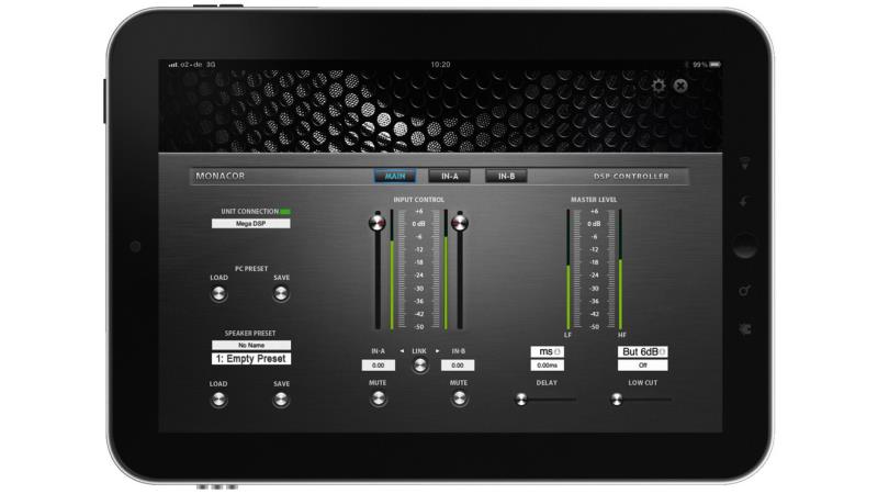 Najsuvremenija tehnologija digitalnih pojačala s DSP upravljanjem, u kombinaciji s zvučnicima visokih performansi iz Beyme i Faitala smještenim u ormarićima vrhunske izrade pružaju performanse koje još nisu postignute standardnim aktivnim sustavima zvučnika. Integrirani DSP programiran je putem Ethernet LAN veze i softvera prilagođenog korisniku. Uz besplatnu aplikaciju DSP-Control za iOS i Android, ovaj impresivni sustav također se može prikladno kontrolirati putem mreže putem WLAN-a. Prekidači i usmjerivač koriste se za središnju administraciju, grupiranje, kao i za individualno programiranje i ugađanje bilo kojeg broja MEGA-DSP sustava. Korisnik može pohraniti do 80 unaprijed postavljenih postavki u aktivni DSP modul i aktivirati ih izravno na zvučniku. U korisničkom načinu rada moguće je prilagoditi do 10 ekvilajzera s 8 funkcija filtra, kašnjenjem, ograničavanjem, pojačanjem i niskim rezom, kao i učitavanjem i pohranjivanjem unaprijed postavljenih postavki za svaki ulaz. Svaki zvučnik serije MEGA-DSP opremljen je istim 2-kanalnim pojačalom velike snage koji ima ukupnu snagu veće od 600 W. Ove visoke performanse interno su usklađene s različitim modelima serije MEGA-DSP putem DSP kako bi se postigao maksimalni zvučni tlak.